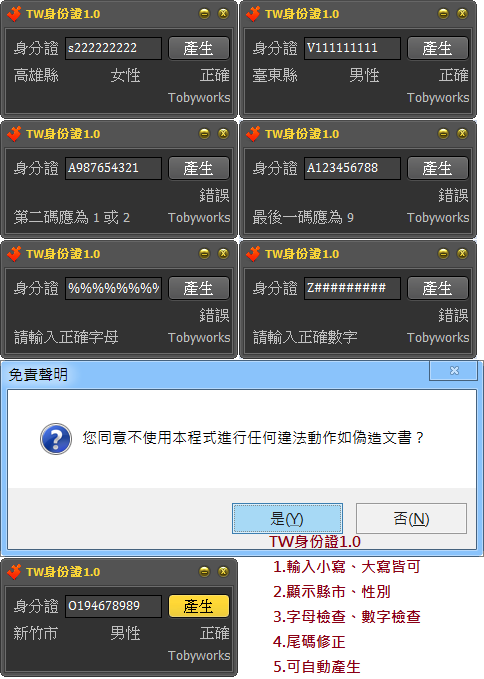 TW身份證1.0 - 身份證字號產生 身份證字號檢查